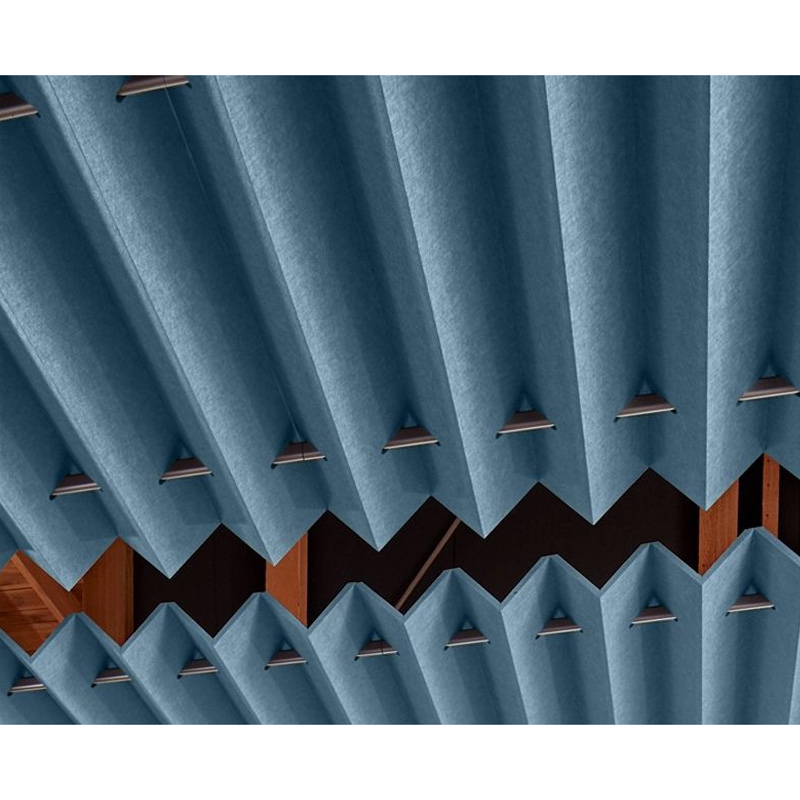 Polyester fiber acoustic panel is synthesized by high temperature and high pressure by needle punching processing, and the porosity is above 90%. We also have patent technique for permanent fire retardant with our acoustic panels. There are more than 44 colors for you to select. The acoustic board can be cut into any shape as your requirements.