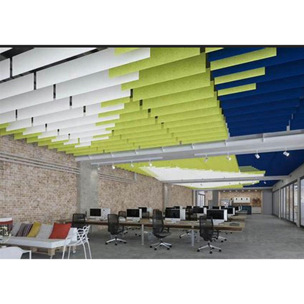When people do the acoustic treatment to the inside a building, not only the walls need to be treated, but also the ceiling. Many materials can be used for the acoustic ceiling, such as mineral wool ceiling, fiberglass ceiling, wood ceiling, fiberglass ceiling. And they can also be in different forms, mostly in horizontal direction. In recently years, Office Acoustic Baffle is getting more and more popular.